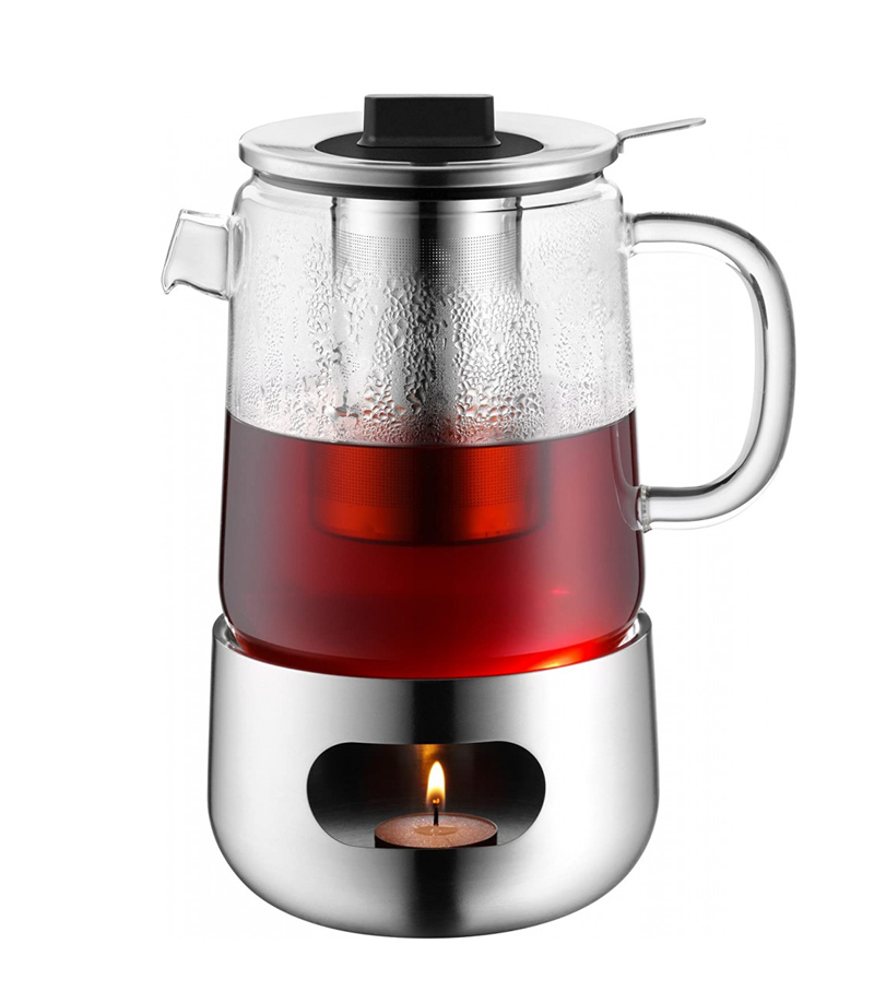Ấm pha trà WMF SmarTea dung tích 1L SET 3PCS gồm ấm trà chất liệu thuỷ tinh, lọc trà và đế đựng nến chất liệu thép không gỉ Cromargan