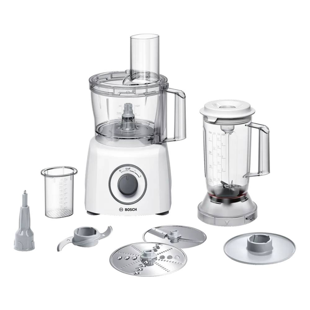 .+ Cối trộn bột 2.3L ||+ Cối xay sinh tố 1L ||+ Cối xay hạt||+ 1 đế bào sợi, 1 đế bào lát||+ 2 lưỡi dao |