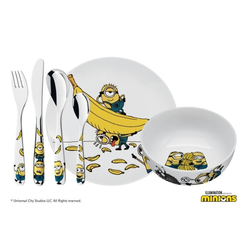 Set bát, đĩa, dụng cụ dao thìa dĩa ăn cho bé hoạ tiết Minions WMF Kinderbesteck-Set 6-teilig