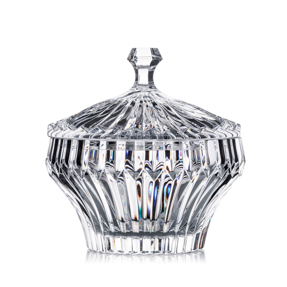 Thố pha lê Rogaska Crown Jewel 19cm trắng trong suốt có nắp