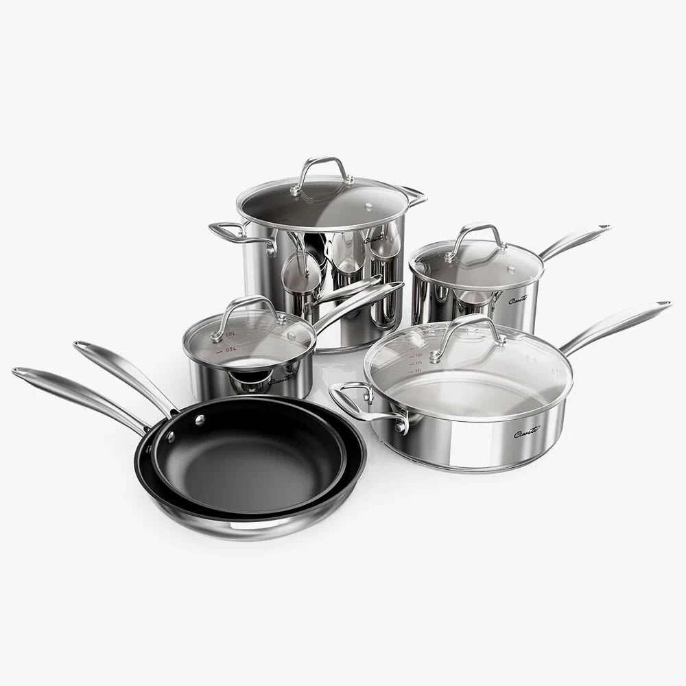 Bộ nồi inox Ciwete set 6 món (2 chảo chống dính, 1 quánh, 1 nồi chảo, 2 nồi)