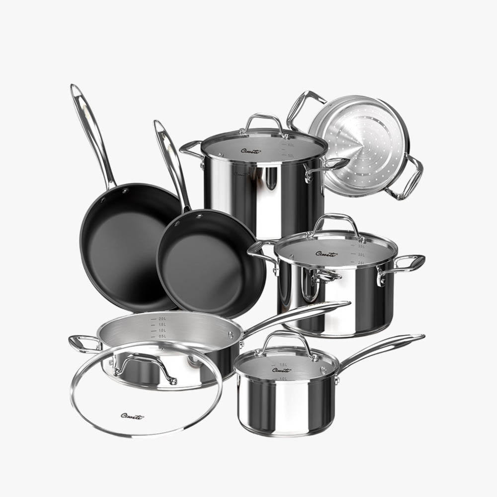 Bộ nồi inox Ciwete set 7 món (2 chảo chống dính, 1 quánh, 1 nồi chảo, 2 nồi , 1 xửng hấp)