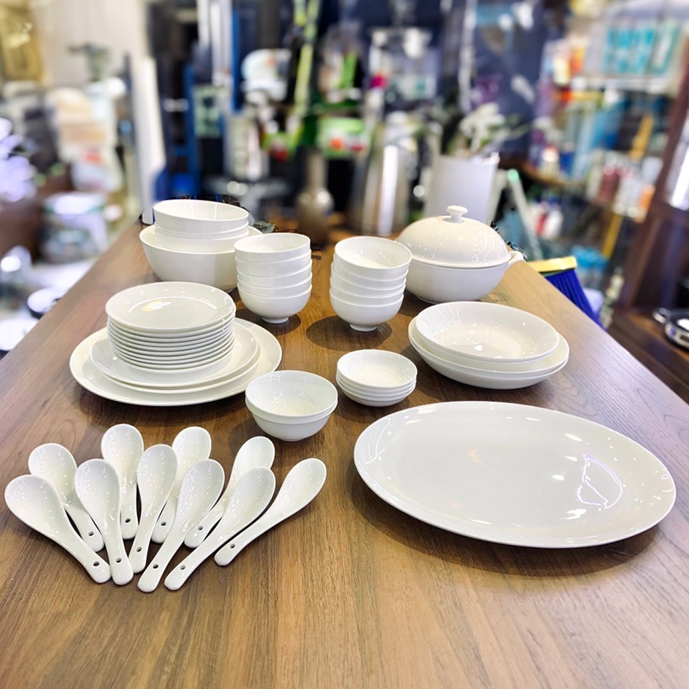 Bộ đồ ăn sứ xương Imperial London Trắng trơn 50 chi tiết