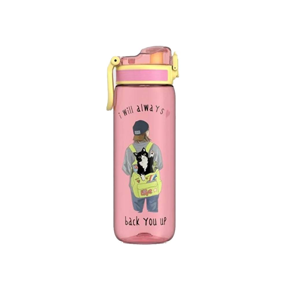 Bình nước Renga Tritan Rybo-X Patterned 630ml màu vàng con mèo có tay cầm