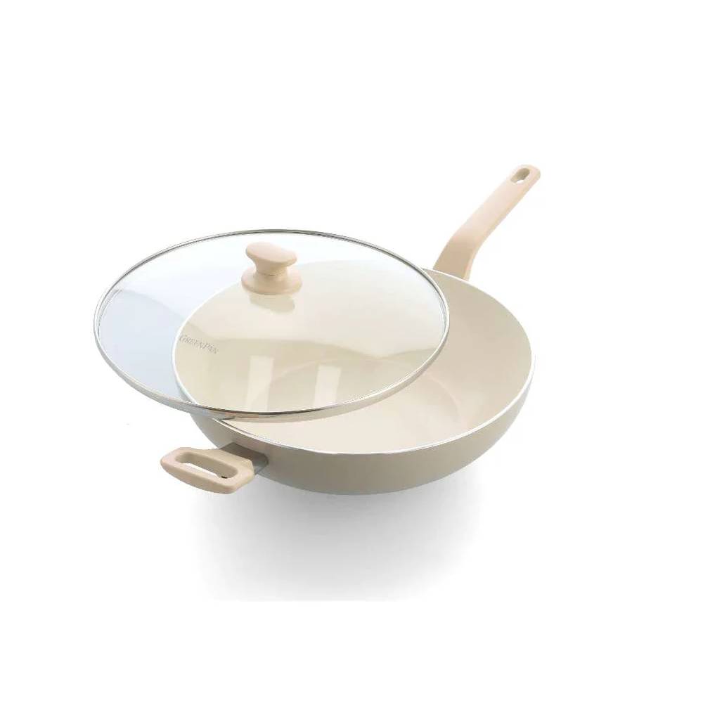 Chảo chống dính Greenpan Wok Essence Collection 32cm có vung kính