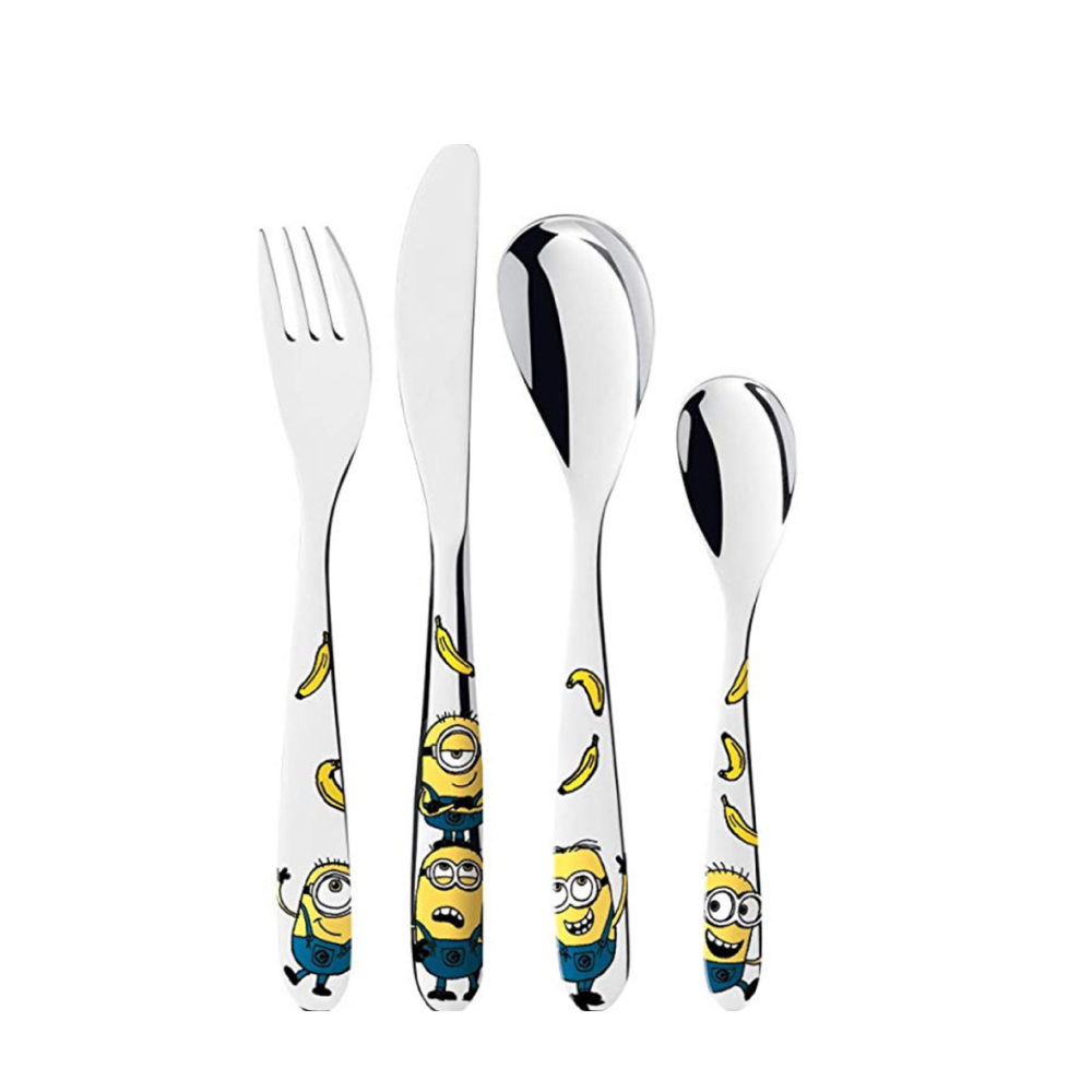 Set dao thìa dĩa trẻ em WMF Minions Children’s Cutlery Set 4 Pieces Stainless Steel Cutlery Children from 3 Years